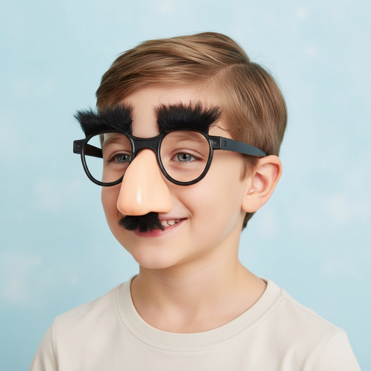 این محصول جذاب مناسب تمام سنین می باشد و جنبه شوخی _ سرگرمی _ نمایشی و... دارد . این محصول به یکدیگر چسبیده هستن و با زدن عینک بصورت یکجا روی صورت شما قرار می گیرد
