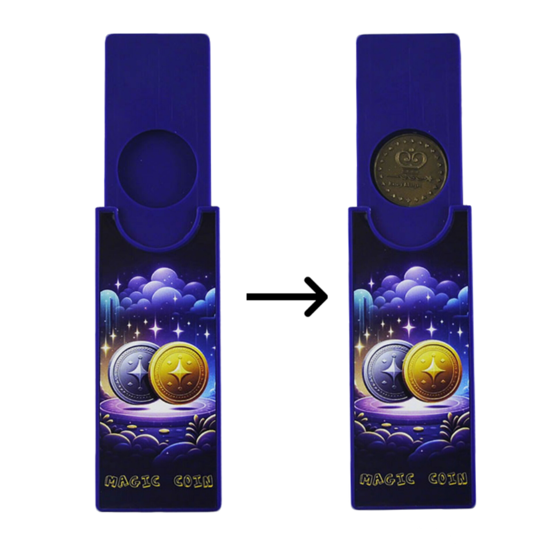 یک جعبه جادویی کشویی کوچک دارید. داخل جعبه یک عدد سکه به رنگ نقرهای قرار دارد و سکه را بیرون آورده و به همه نشان می دهید . مجدداً سکه را داخل جعبه قرار می دهید . حالا با یک حرکت جادویی ناگهان سکه نقرهای به رنگ طلایی تبدیل میشود . در اینجاست که همه شگفت زده و متعجب می شوند .