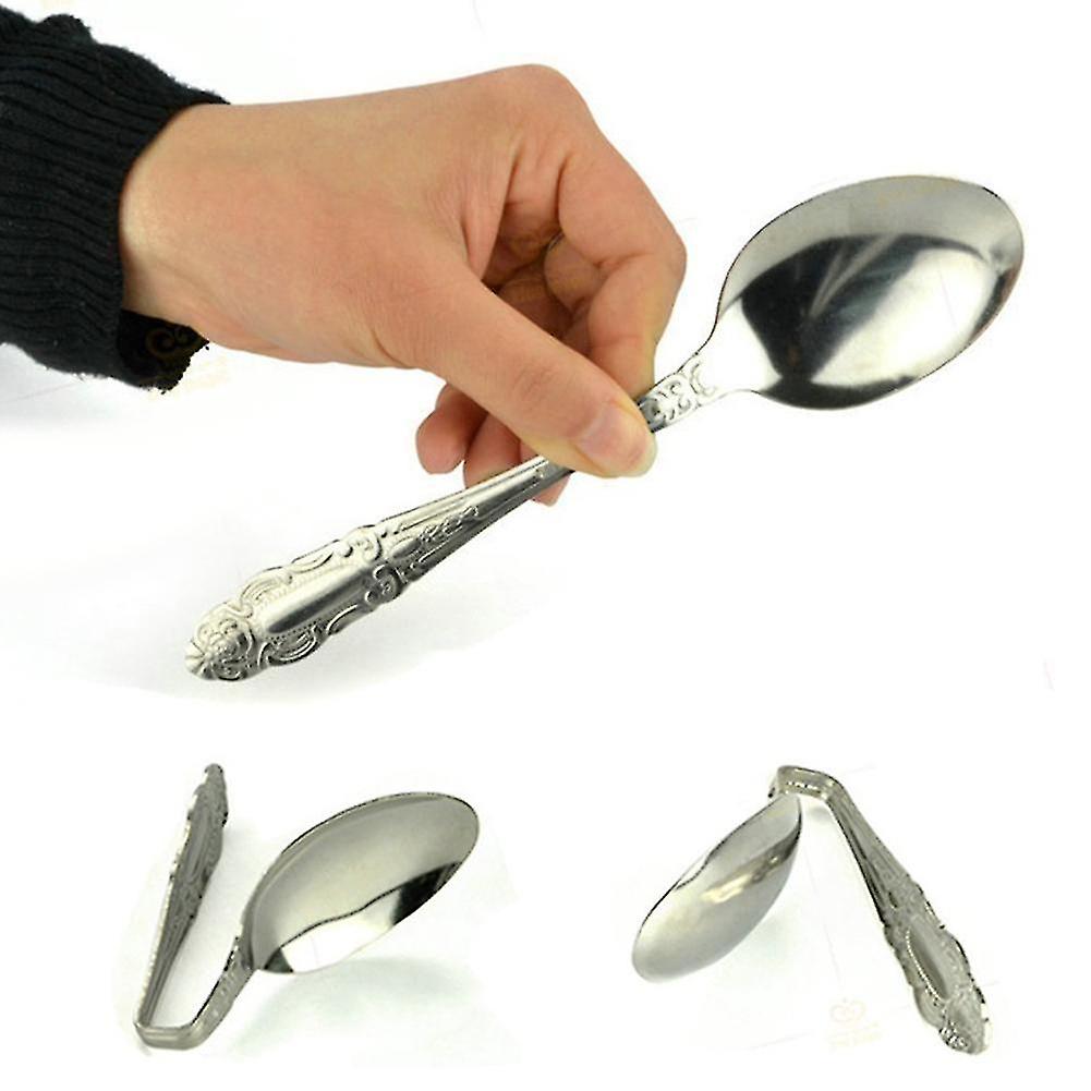 ابتدا شعبده باز یک قاشق به ظاهر معمولی را به همگان نشان داده و بین دو انگشت دست خود می گیرد سپس شعبده باز با تمرکز به قاشق خیره می شود در اینجا قاشق صاف شروع به خم شدن میکند و همگان شگفت زده مات و مبهوت میشوند.